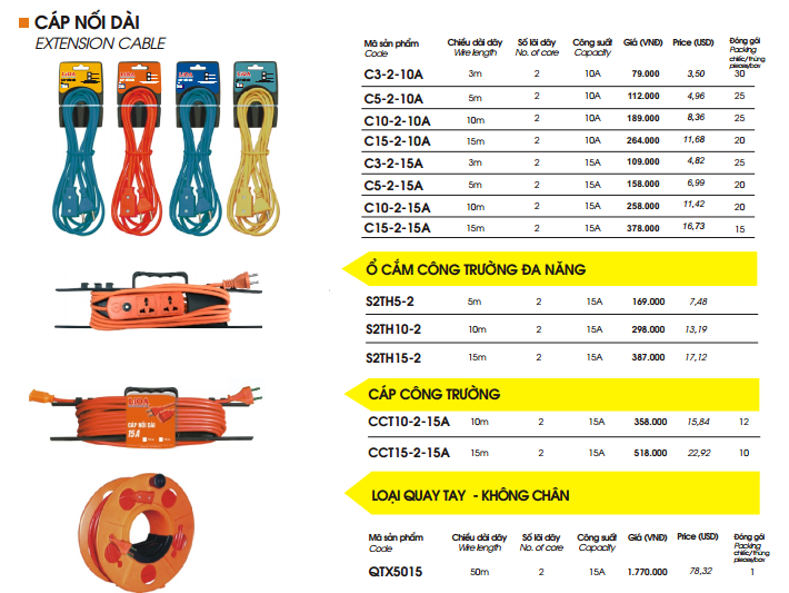 + Cáp nối dài lioa để nối cấp điện cho các thiết bị điện ở xa mà tiết kiệm chi phí