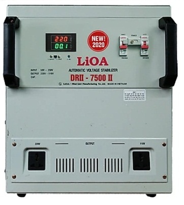 Công ty Lioa Nhật Linh sản xuất máy ổn áp lioa 1 pha ,công suất 7.5kva,- DRII-7500II,điện áp vào50v-250v,điện áp ra 220v ;110v, có chức năng ổn định nguồn điện,dùng cho khu vực điện yếu ,độ bền cao,phù hợp dùng cho 4-5 điều hòa, máy tính,nồi cơm,máy bơm,dàn âm thanh,…