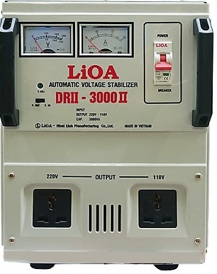 Công ty Lioa Nhật Linh sản xuất máy ổn áp lioa 1 pha ,công suất 3kva- DRII-3000II,điện áp vào 50v-250v,điện áp ra 220v ;110v,có chức năng ổn định nguồn điện,dùng cho khu vực điện yếu phù hợp dùng cho 02 điều hòa 9000ptu,03 máy tính,nồi cơm,máy bơm,…giao hàng nhanh toàn quốc